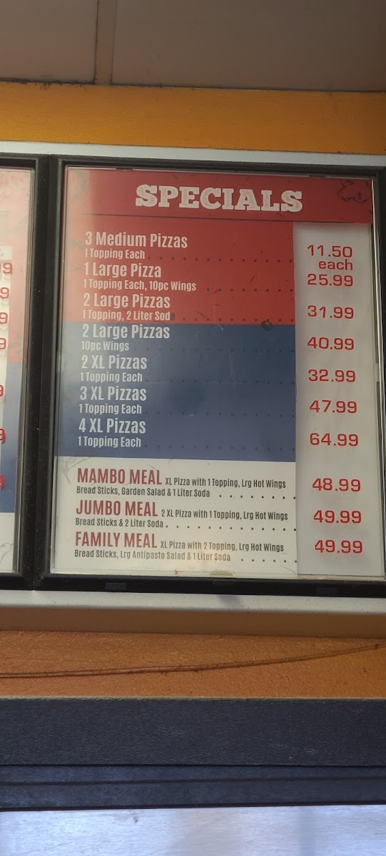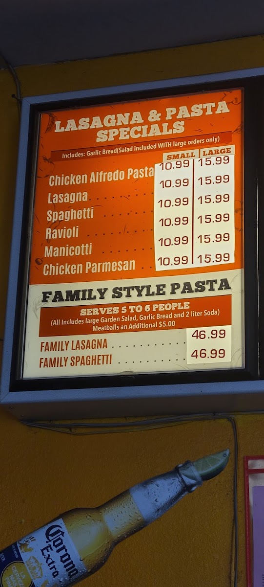 The menu offers a variety of pizzas along with a selection of side orders, desserts, and pasta options. Pizza choices include specialty options such as the Honolulu Pizza, Bid Mofo Pizza, and the Meat Lovers Special Pizza. These pizzas are available for meal delivery, takeaway, and in-restaurant dining.